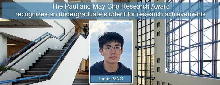 The Department of Physics is pleased to announce the winner of the 2025 Paul and May Chu Undergraduate Research Award. The Paul and May Chu Undergraduate Research Award (Honorable Mention) is awarded to Junjie PENG.